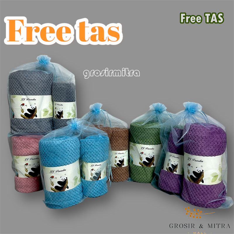 SPESIFIKASI PRODUK ☆ Bahan Mikro bulu Beli Handuk set= 2PCS + FREE TAS ☆ Tersedia UkuraN = ±35 x 75 cm = ±70 x 140 cm ☆ KETEBALAN: STANDART KEUNGGULAN ✅ Berdaya Serap Tinggi ✅ Tidak rontok bulu ✅ Bahan Lembut Dikulit ✅ Handuk akan lebih mengembang setelah di cuci ✅ Aman untuk bayi anak maupun dewasa
