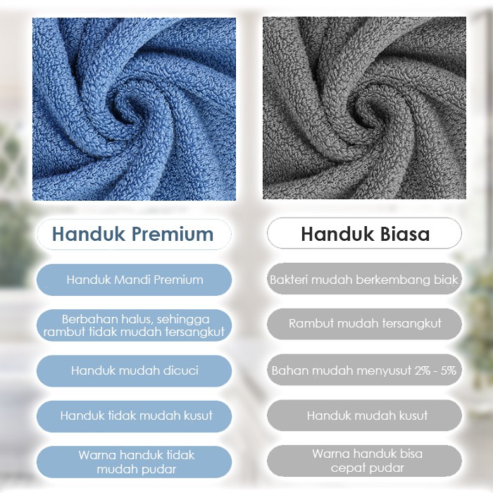 Keunggulan : 1. Diproduksi Oleh Terry Palmer 2. Mempunyai daya serap yang tinggi 3. Mempunyai tekstur yang rapi dan lembut 4. Tidak gatal saat digunakan, Warna pada handuk tidak mudah luntur