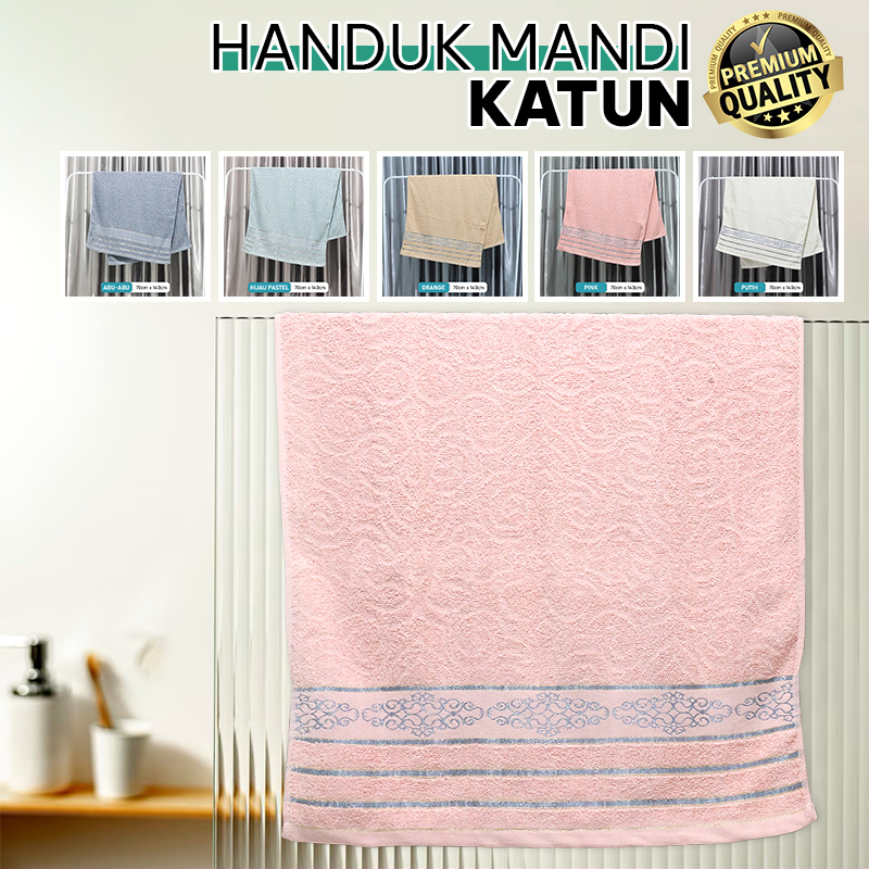 ✅DESKRIPSI : ▪ Ukuran : 70cm x 140cm - handuk mandi dewasa ▪ Bahan : 100% Katun ▪ Berat : 400 gram ▪ Perawatan : cuci dengan mesin atau tangan, keringkan dengan mesin atau matahari, tidak perlu disetrika, jangan menggunakan pemutih.