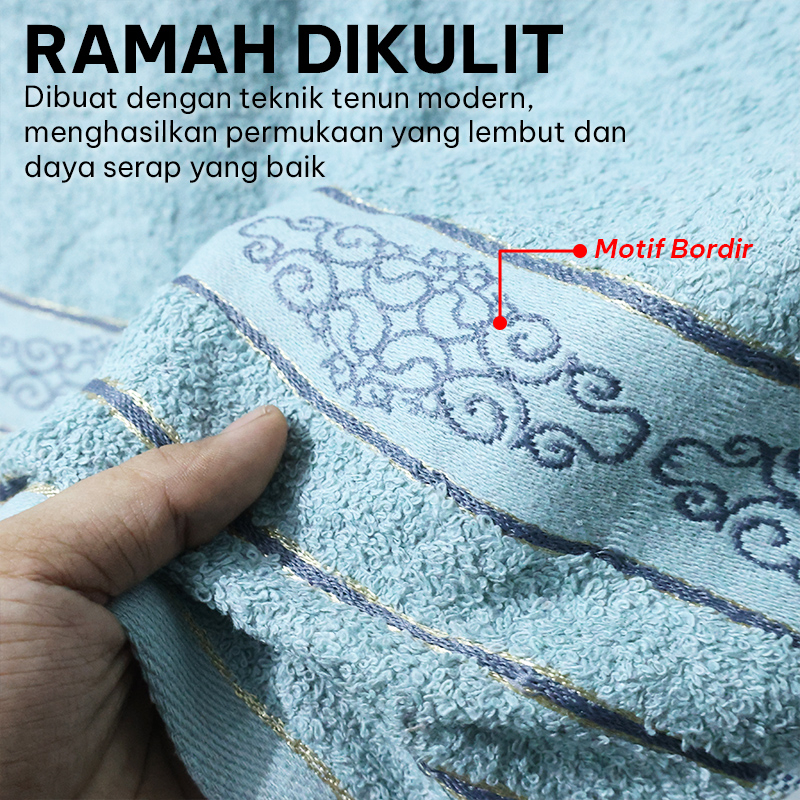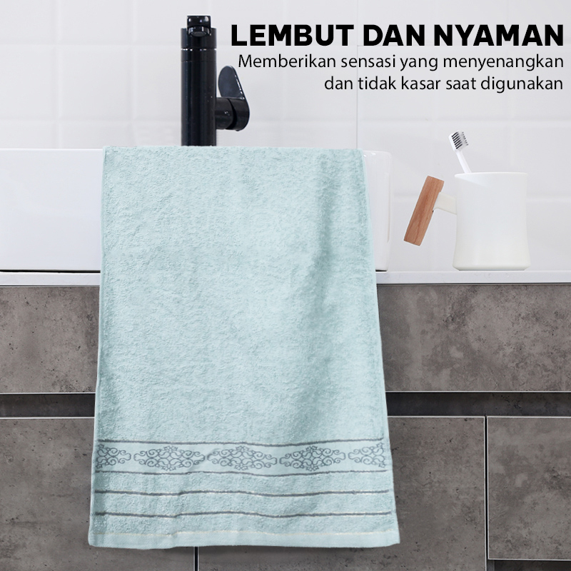 ✅FITUR : ▪ Berdaya serap tinggi bahan halus & lembut dikulit ▪ Dilengkapi teknologi pile towel anti microbial protection (anti bau) ▪ Model desain cantik yang elegan membuatnya lebih mewah ▪ Kualitas tinggi dibuat dengan teknik tenun modern, menghasilkan permukaan yang lembut & daya serap 100x lebih baik dari katun biasa