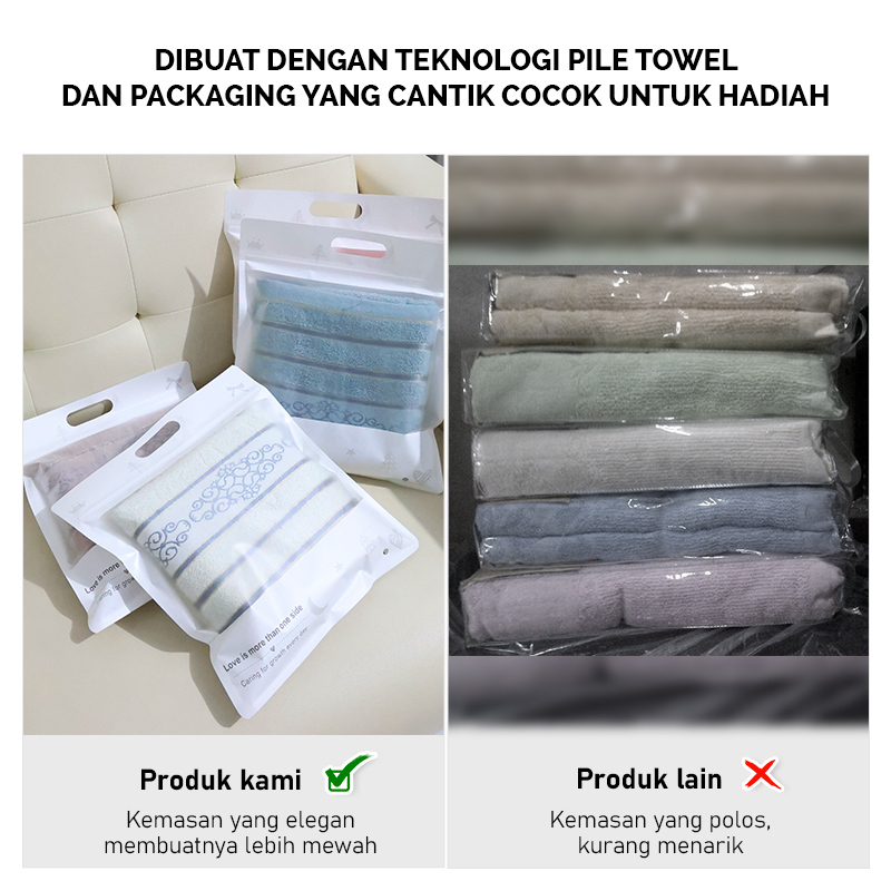 ✅FITUR : ▪️ Berdaya serap tinggi bahan halus & lembut dikulit ▪️ Dilengkapi teknologi pile towel anti microbial protection (anti bau) ▪️ Kemasan cantik yang elegan membuatnya lebih mewah ▪️ Kualitas tinggi dibuat dengan teknik tenun modern, menghasilkan permukaan yang lembut & daya serap 100x lebih baik dari katun biasa