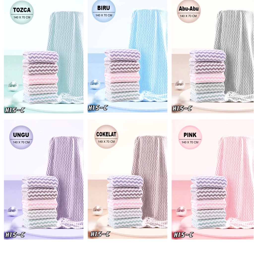 Handuk tebal dan lebar dengan luas ini terbuat dari bahan microfiber yang menyerap air dengan cepat. Anda dapat membersihkan air ditubuh dan rambut dengan cepat. Dengan kain microfiber rambut lebih cepat kering dibandung handuk pada umumnya. Handuk nyaman dan lembut ini membuat Anda tetap bersih ketika berada di luar rumah. Tersedia motif diamond & zigzag.