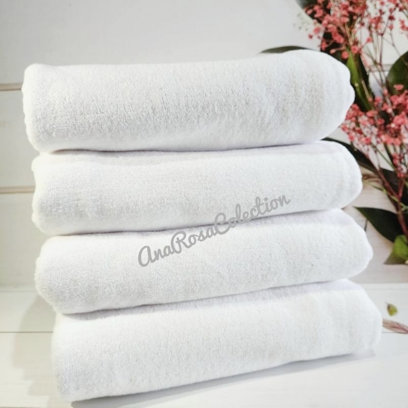 Handuk mandi hotel polos putih berukuran 70x140cm dengan warna putih bersih membuat mandi anda lebih nyaman.. cocok sekali untuk menemani mandi anda... Handuk ini juga banyak digunakan untuk handuk Hotel dll.