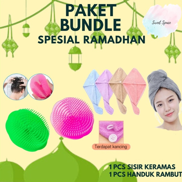 HANDUK RAMBUT + SISIR KERAMAS PROMO BUNDLE DARI TOKO SWEETSPACE
