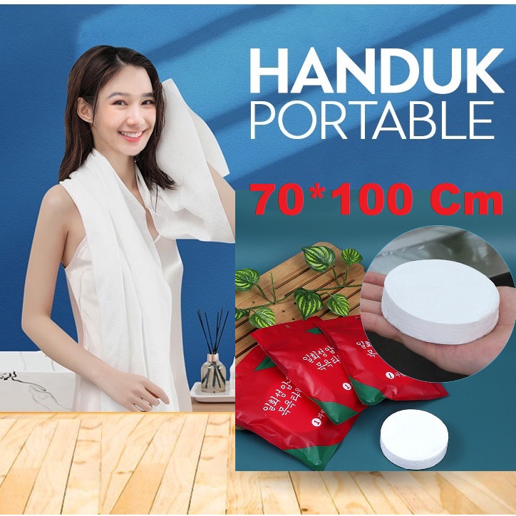 Handuk yang cocok digunakan untuk membersihkan apapun seperti kaca mobil, dinding, sepatu, meja kursi dan lainnya. Handuk portable yang cocok digunakan saat dimasukkan akan mengembang menjadi tisu dengan ukuran 70x100 cm. Dengan memiliki bentuk yang kecil dan berat yang ringan sehingga cocok disimpan dimanapun.