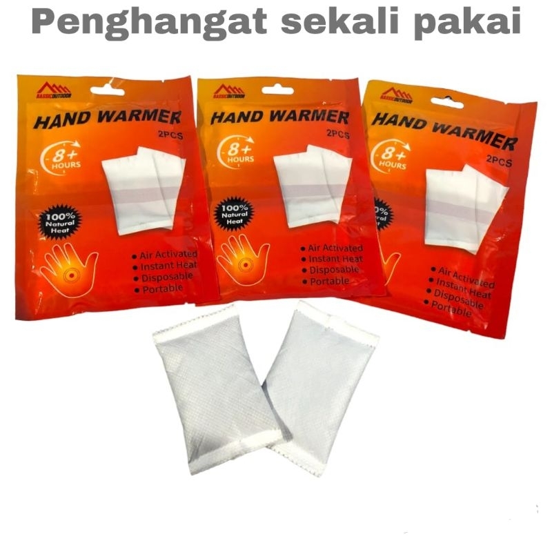 Cara penggunaan : 1. Buka bungkus luar ketika ingin digunakan, jangan dibuka dahulu jika tidak ingin digunakan. 2. Kocok di udara terbuka lalu diamkan sebentar, panas mulai muncul setelah 3-5 menit 3. Tempatkan penghangat tangan pada posisi yang diinginkan 4. Setelah digunakan, buang ke tempat sampah. Bahan aktif nya tidak mencemari lingkungan