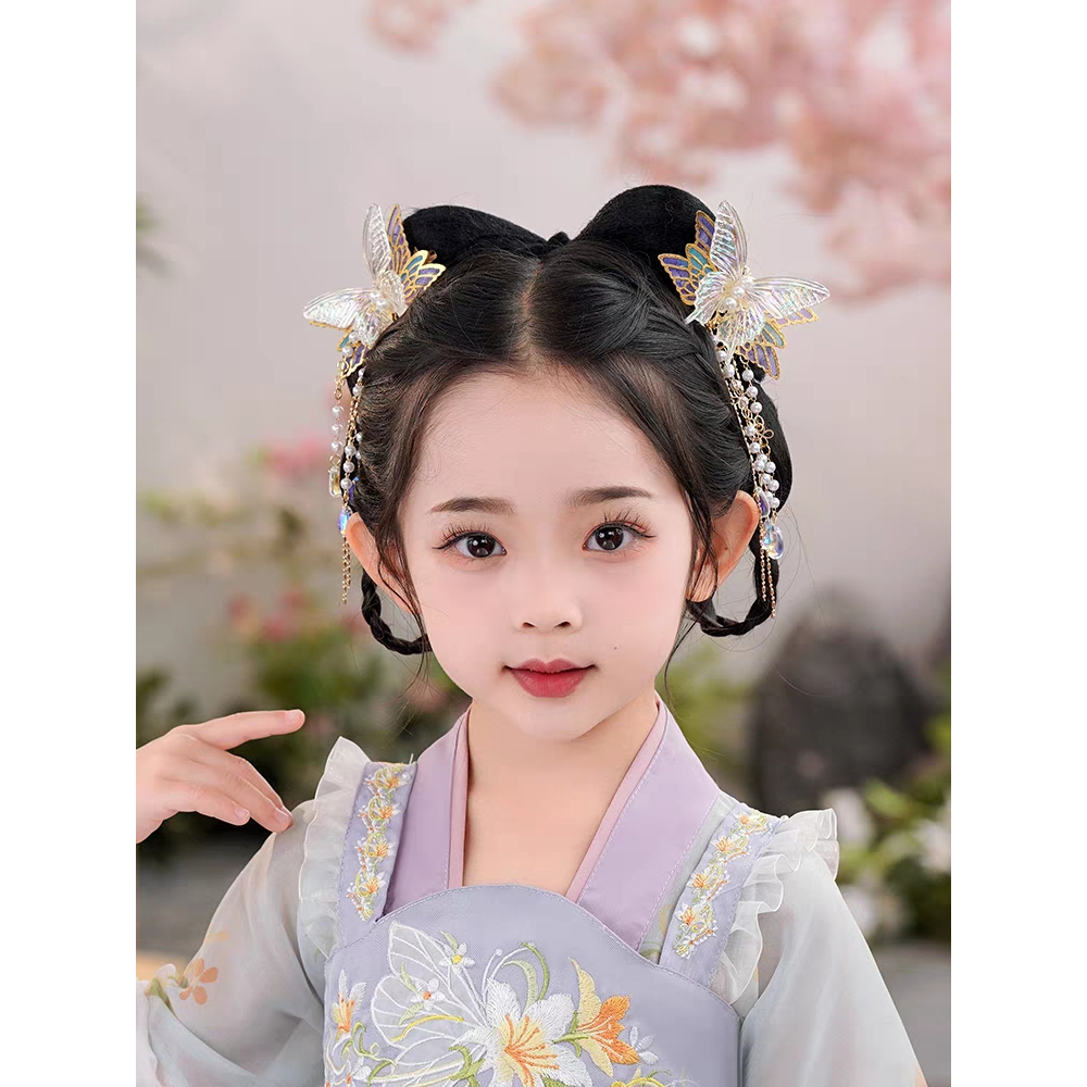 Detail Hanfu Kupu Klip Rambut Gadis Rumbai Bunga Mutiara Jepit Rambut Klip Sisi Aksesoris Rambut Wanita