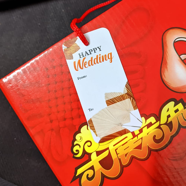 Souvenir & Party Supplies > Pembungkus Kado & Kemasan > Kartu Ucapan > Hange tag kartu ucapan HAPPY WEDDING / HAPPY BIRTHDAY / THANKYOU hampers