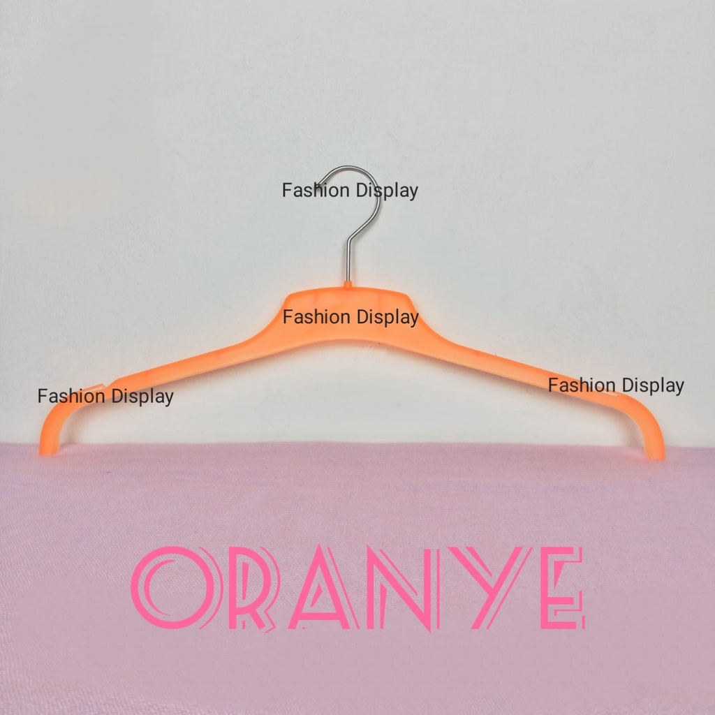 Hanger jas kecil / 282 Ukuran dewasa Bahan plastik Warna Hitam, Putih , Orange, dan Pink Harga 1 lusin = 12 pcs