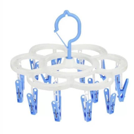 Hanger Serbaguna 16 jepit adalah hanger dengan 16 anak jepitan. Sangat praktis dipakai untuk jemuran kaos kaki, celana dalam, bra, pakaian bayi, sarung tangan. Irit tempat, dengan hanger ini tali atau tiang jemuran bisa gantung lebih banyak pakaian.