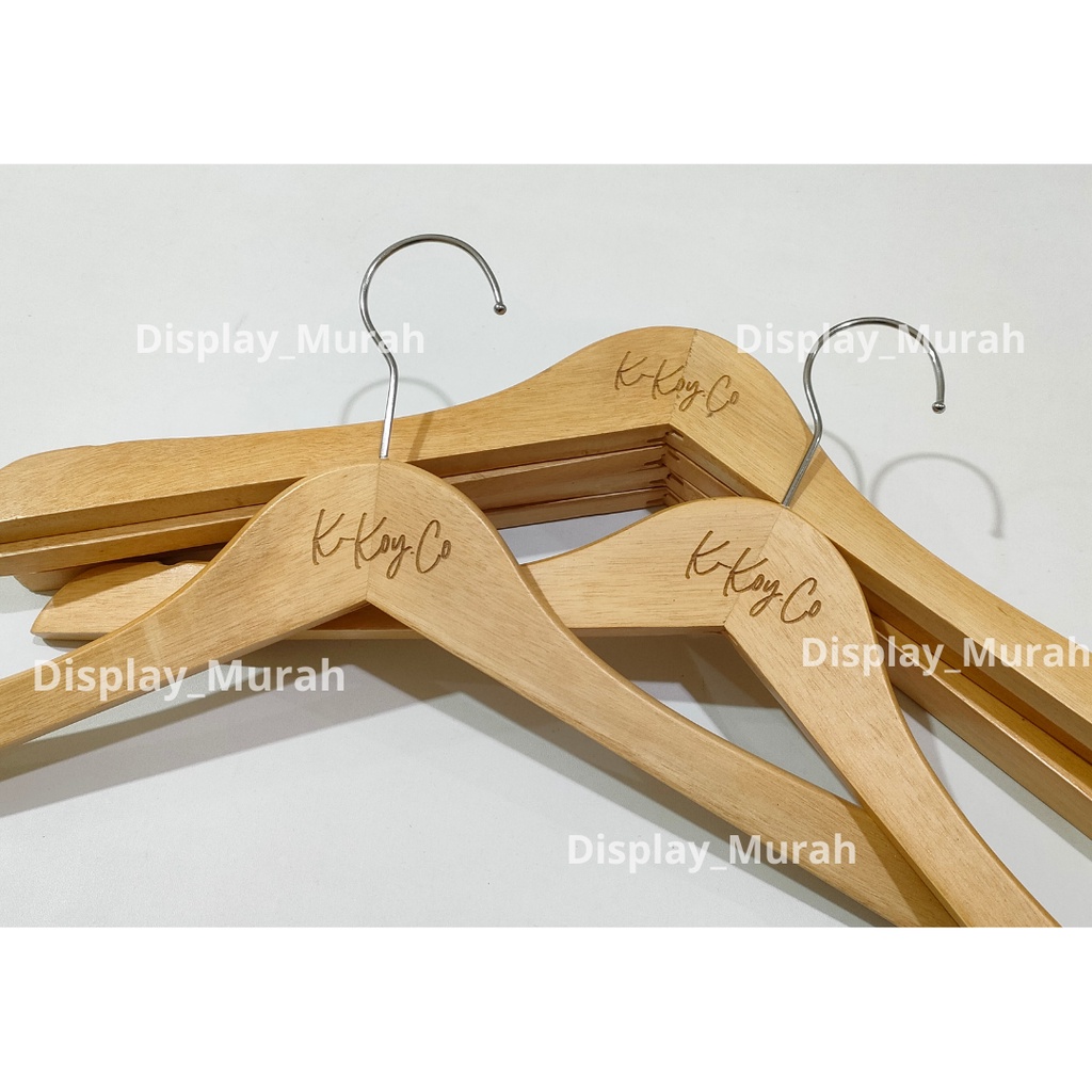 Perlengkapan Rumah > Organizer Rumah > Gantungan > Hanger Kayu Natural Grafir Logo Laser Gantungan Baju Kayu Pakai Logo Grafir Laser Bisa Custom Logo Grafir Laser-BH