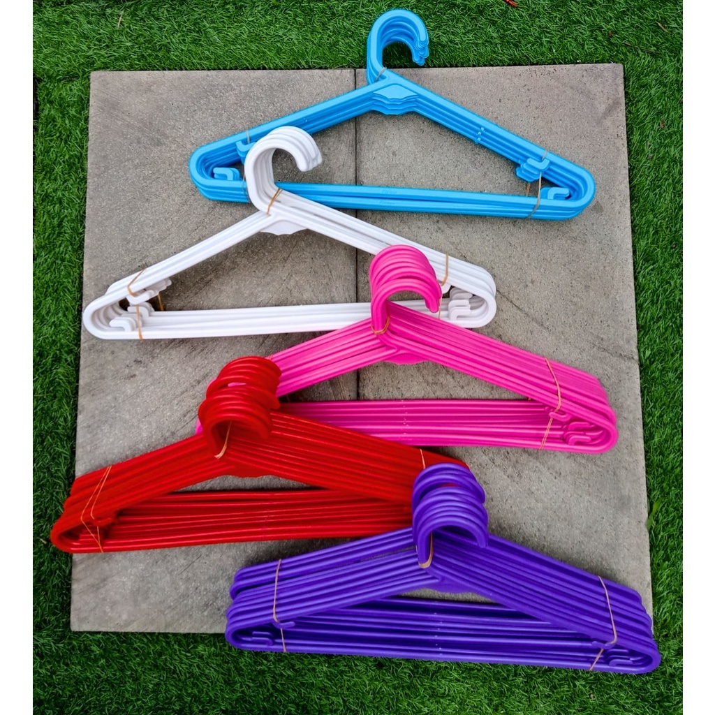 Detail Hanger Warna / Hanger Putih / Gantungan baju Plastik Putih isi 12 PCS
