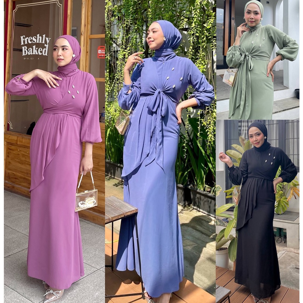Video perkenalan produk Hannah Dress Ceruty Long Dress Kondangan Baju Pesta Hijab Seragam Bridesmaid Gaun Prewedding Gratis Bross Payet. Sumber: Shopee.