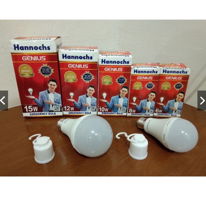 HANNOCHS GENIUS Lampu Emergency AC DC 6 8 10 12 15 Watt Otomatis Nyala