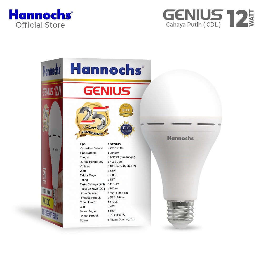 Detail Hannochs Lampu Emergency Led AC/DC Genius 12 watt cahaya Putih