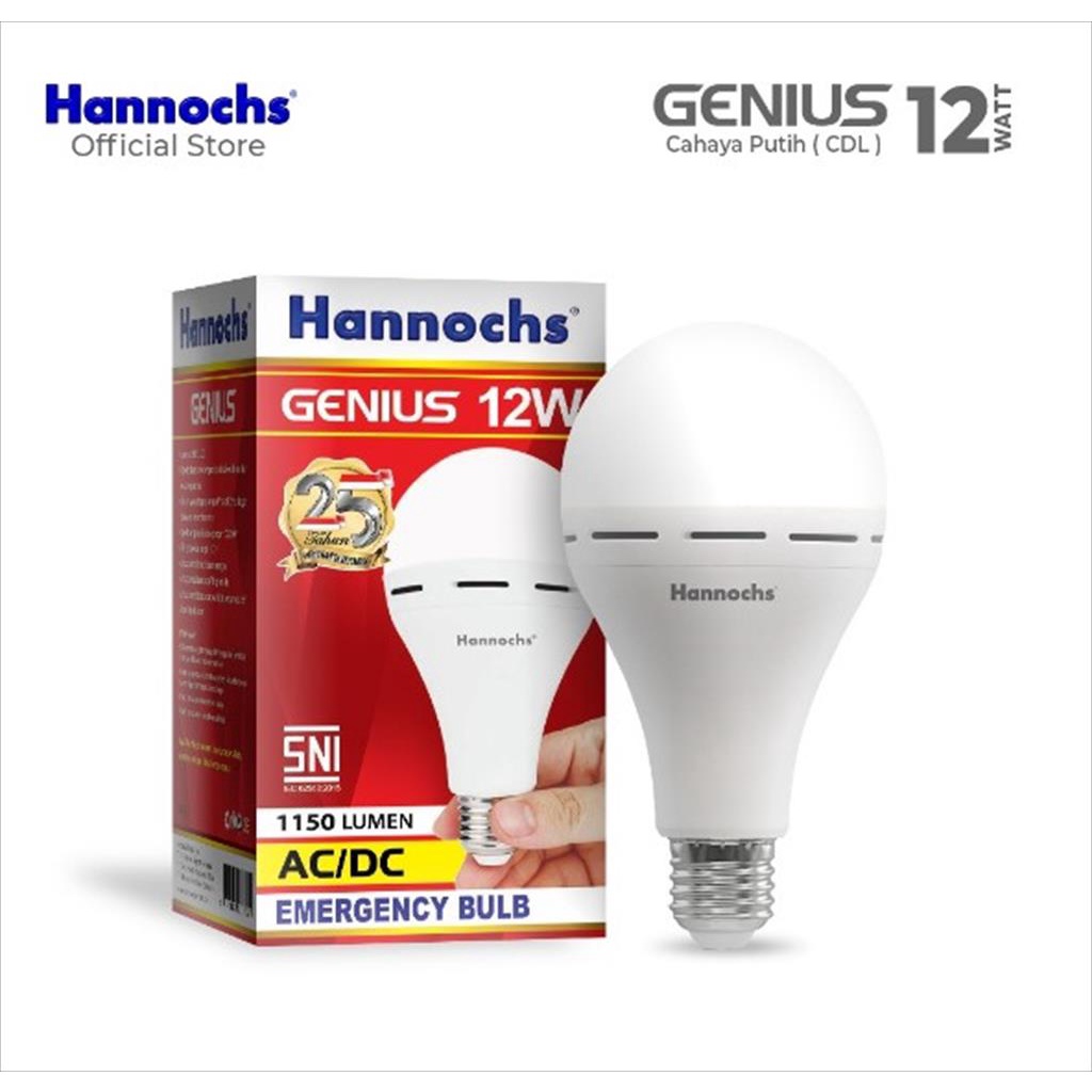 HANNOCHS Lampu Led Emergency AC/DC GENIUS 12W Cahaya Putih *Lampu LED inovasi terbaru dengan fungsi AC/DC *Berfungsi sebagai lampu penerangan biasa dan lampu emergency, tetap menyala saat listrik padam *Dilengkapi dengan Baterai Lithium dengan fitur proteksi kelebihan cas dan kekurangan cas *Tidak perlu khawatir akan pengisian berlebih karena proses pengisian akan berhenti secara otomatis ketika baterai sudah penuh *Fungsi darurat, dapat digunakan hingga 2.5 jam *Hemat energi hingga 90% dibandingkan dengan lampu pijar *Dapat beroperasi pada tegangan 100 - 240V *Indeks sesuaian warna (CRI) sangat bagus > 80 *Power Factor : 0.9 *Sudut Pencahayaan : 180 *CRI : >80 *FROSTED COVER, tahan benturan *Tahan lama hingga 15.000 jam *Lumen : AC = 1150, DC = 700 *Battery Capacity ( mAh ) : 2500mAh *Dimensi produk : 80 x 154mm *Terbuat dari bahan PBT (Polybutylene Terephthalate) tahan panas sampai 150C *Bebas radiasi IR (Inframerah) & UV (Ultraviolet) *Radiasi panas rendah *Cahaya Lampu Putih 6700K (Cool Daylight) *Tersedia dalam berbagai Pilihan WATT Mohon di cek fungsi DC saat terima, dengan memasangkan lampu ke fitting gantung terlebih dahulu