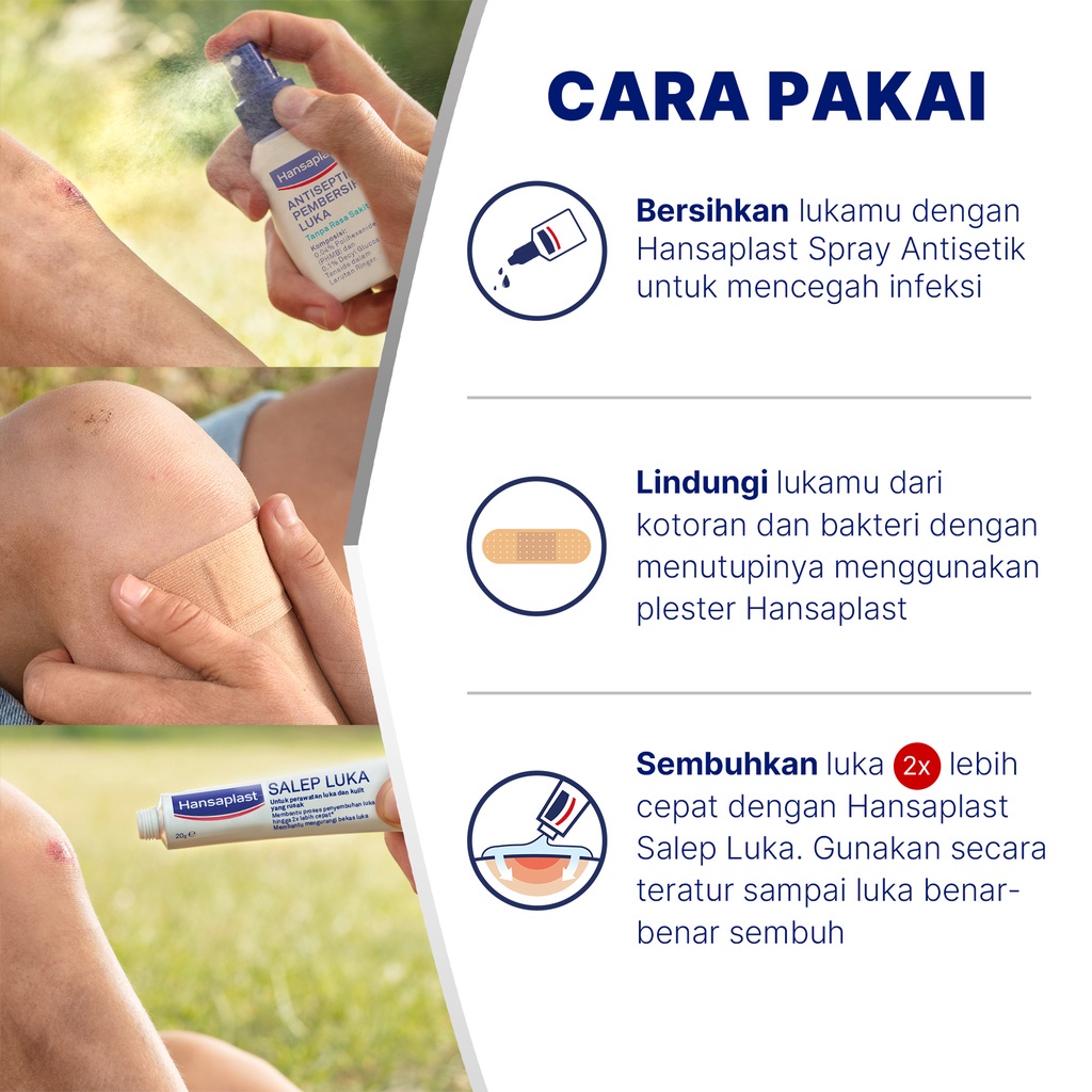 Hansaplast Antiseptik Tetes adalah pembersih antiseptik yang mudah digunakan dalam bentuk semprotan untuk segala jenis luka yang belum terinfeksi maupun luka yang sudah terinfeksi, termasuk: