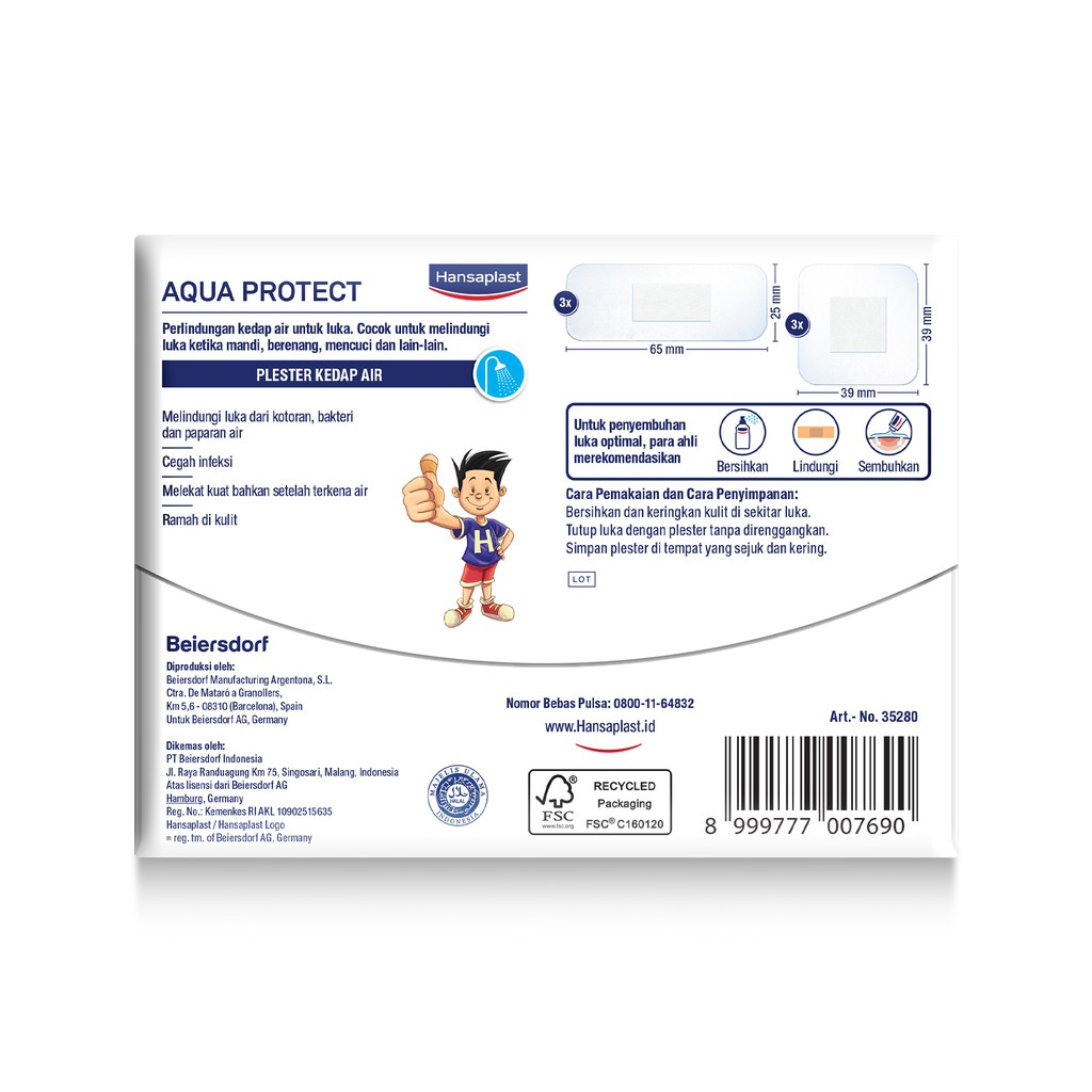 Plester Hansaplast Aqua Protect tersedia dalam 2 ukuran dan mampu melindungi luka secara maksimal.