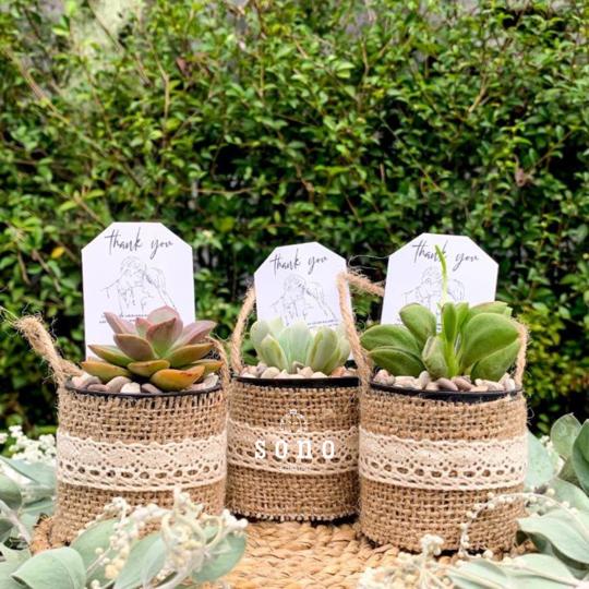 Detail [HANYA PACKAGINGNYA] BURLAPROLL UNTUK Souvenir Kaktus & Sukulen Hias Mini 5cm