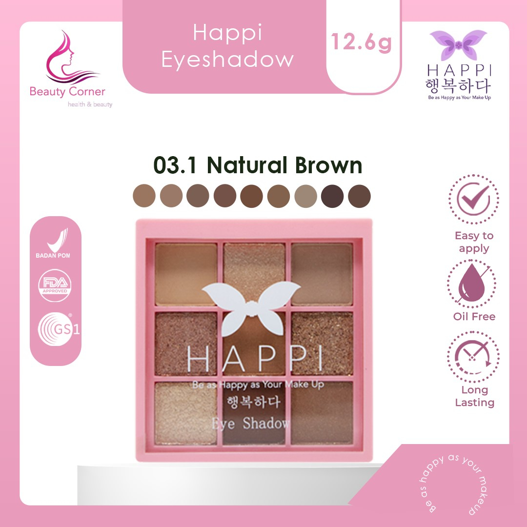 Happi Eye Shadow Merupakan salah satu eyeshadow yang bagus tapi super affordable. Warnanya yang pigmented ga akan membuat kamu boros waktu pengaplikasiannya. Untuk event siang hari bisa diambil warna-warna yang natural nude gitu. Sementara untuk event di malam hari, Happi eyeshadow juga dilengkapi dengan warna-warna bold and quite glam. Jadi paket lengkap banget pokoknya.