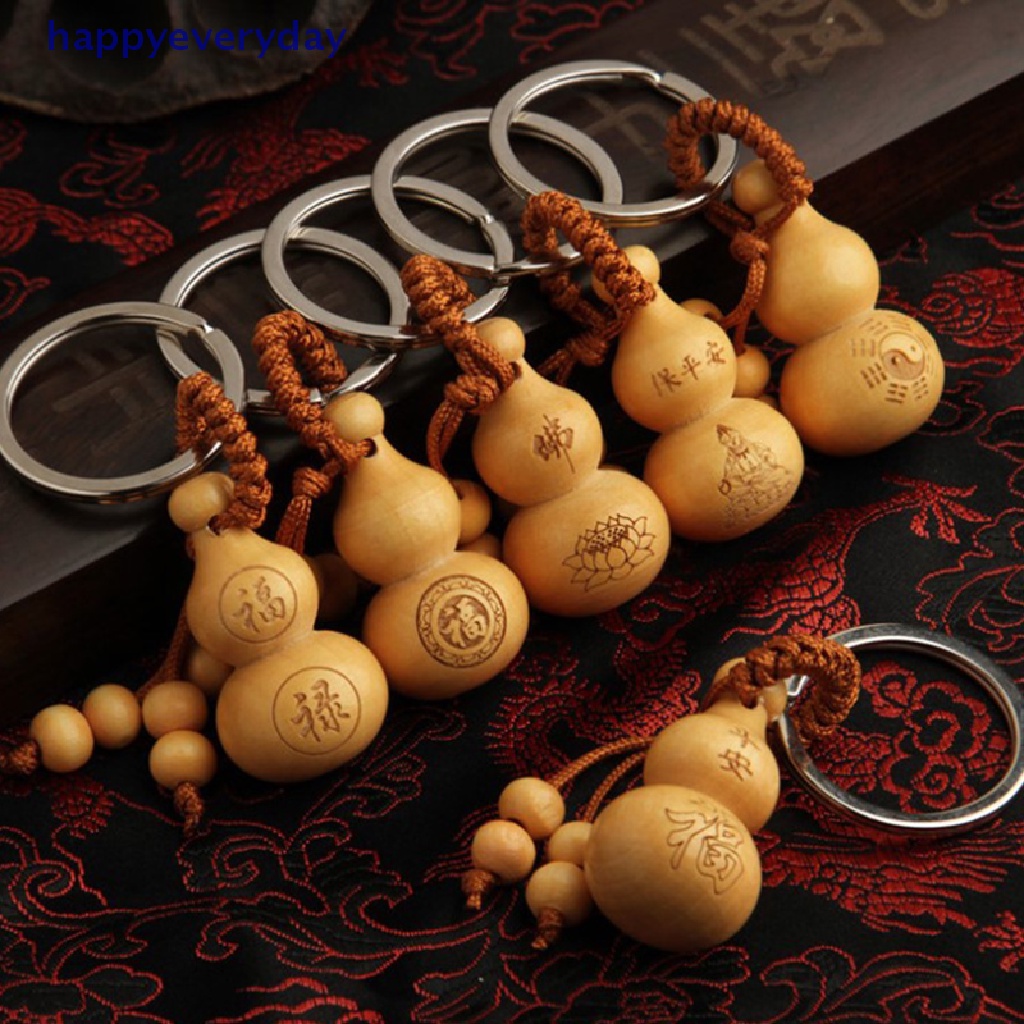 Detail [happy] 1pc Gantungan Kunci Labu Keberuntungan Tradisional Lucu Mini Peach Wood Key Ring [ID]