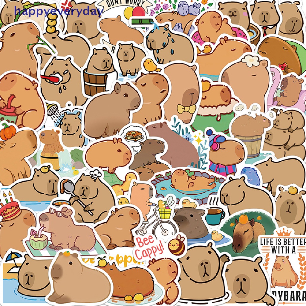 [happy] 50pcs Set Stiker Capybara Lucu Untuk Hadiah Laptop, Gitar, Scrapbook Dan Jurnal [ID]
