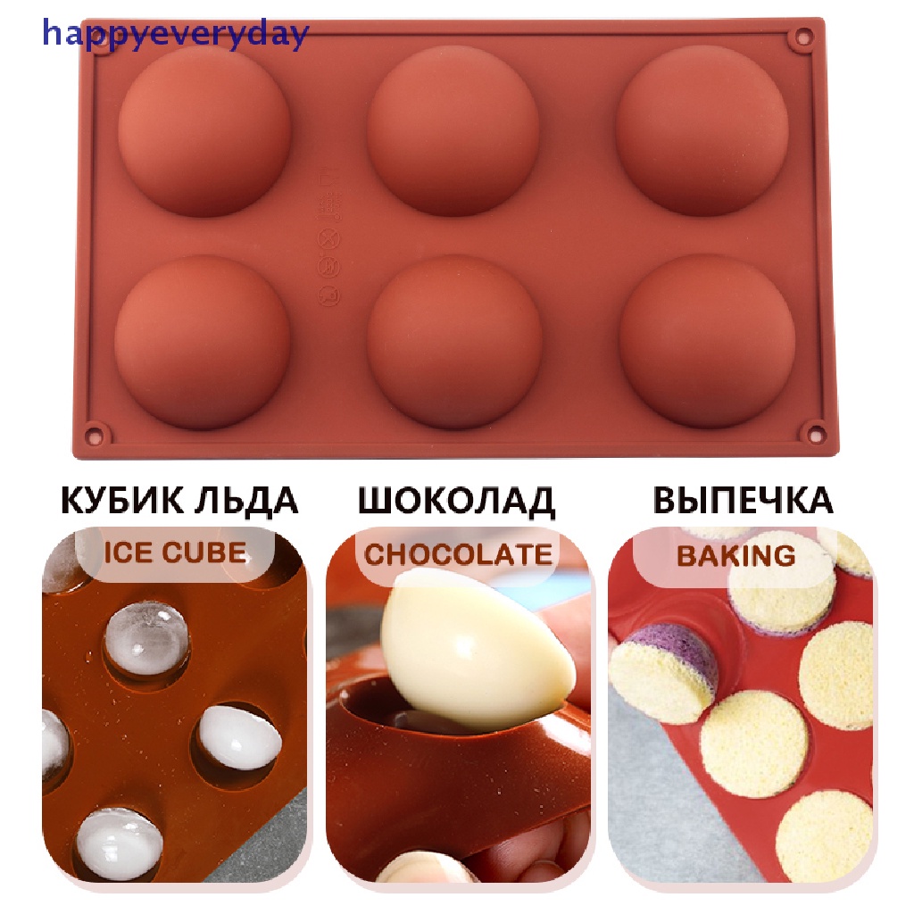 Detail [happy] Cetakan Kue Bentuk Bulat Brown Half Ball Sphere Silicone Chocolate Dessert Mould [ID]