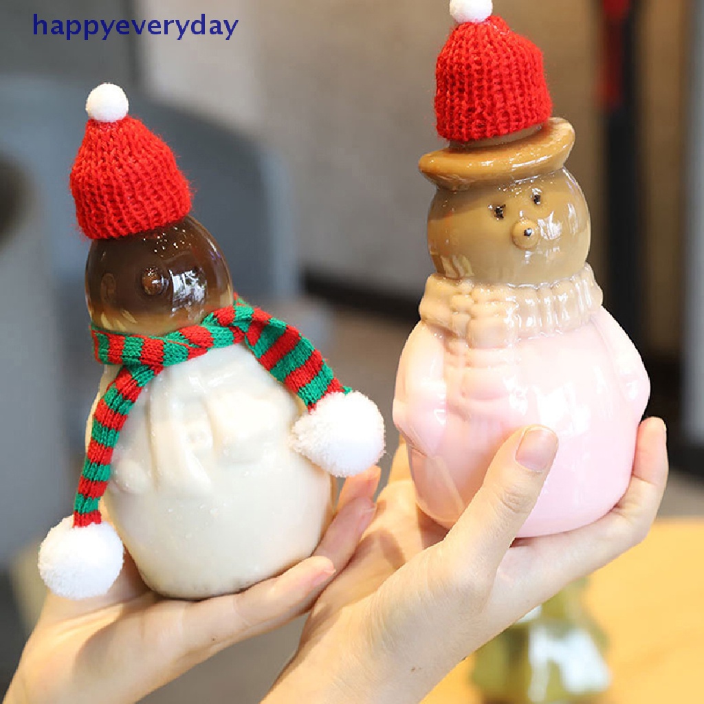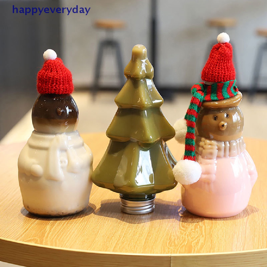 Perlengkapan Rumah > Peralatan Makan > Botol Minum & Aksesoris > [happy] Christmas Snowman Xmas Tree 400ml Botol Minum Transparan Minuman Dingin Es Kopi Susu Teh Juice Cup [ID]