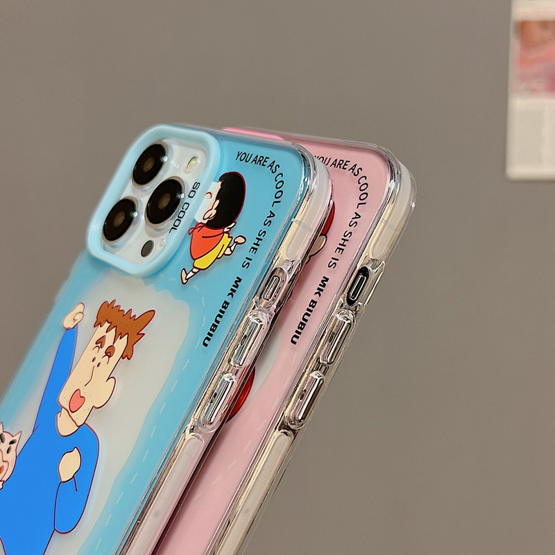 Handphone & Aksesoris > Casing & Skin > Casing & Skin Handphone > Happy Crayon Shin-chan Family Photo Skin Feel Soft Case HP iP iPhone 12 13 14 Pro Max 11 So Cool FTD Casing Apple