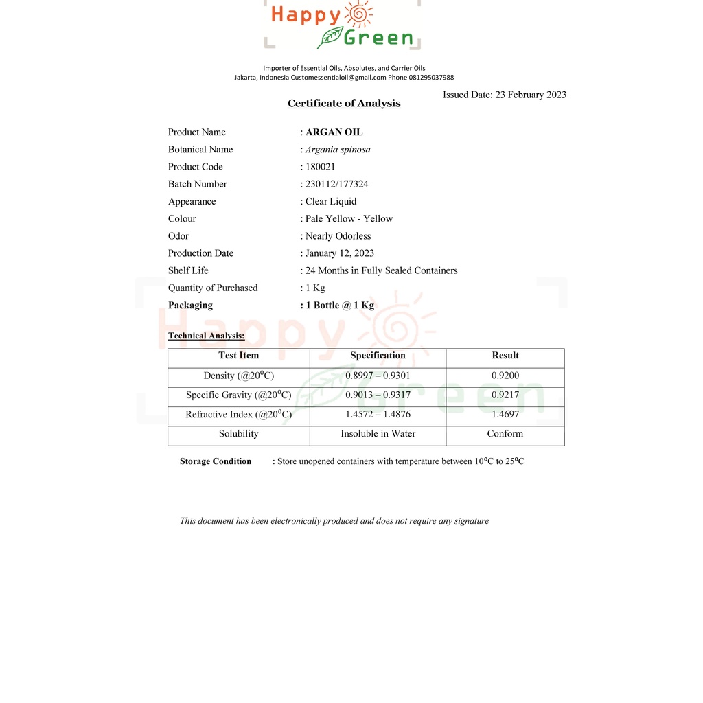 Detail HAPPY GREEN Argan Oil 80 ml - Minyak Argan Cosmetic Grade Carrier Oil