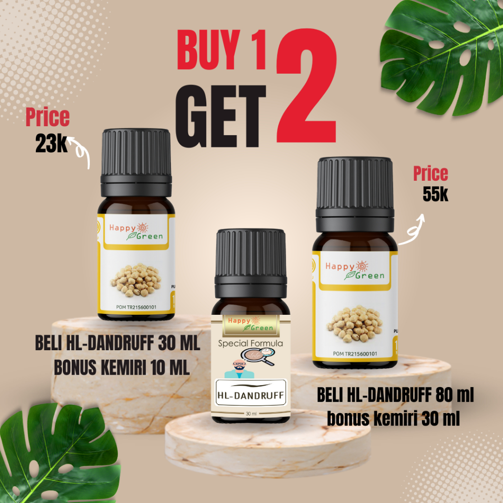 Detail Happy Green Custom Oil buat Rambut Rontok - Faktor Ketombe / Dandruff
