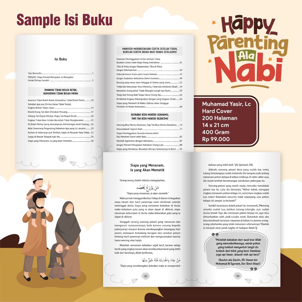 Judul : Happy Parenting Ala Nabi Penulis : Muhammad Yasir, Lc Penerbit : Pustaka Al-Kautsar Ukuran : 21 x 14 cm Jenis Cover : Hard Cover Jenis Kertas : HVS Tebal : 200 hal Berat : 400 gr ISBN : 978623173001