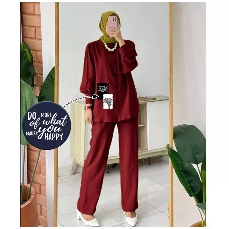 HAPPY SET/SETELAN CRINKLE AIRFLO/SETELAN WANITA KEKINIAN