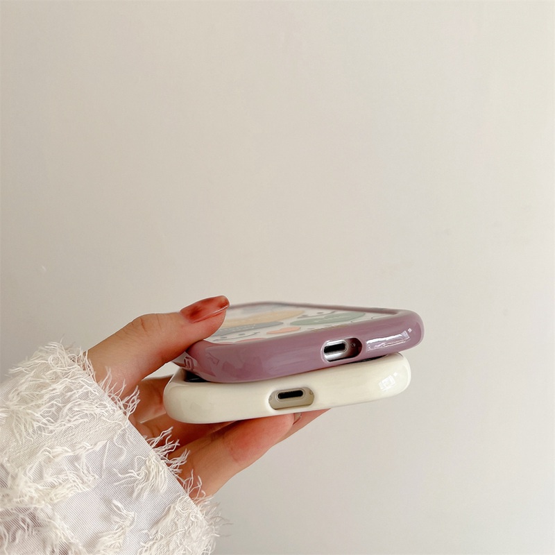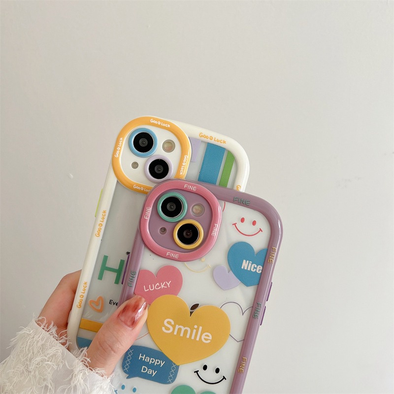 🔔Stok Siap】 Saham Siap】 Stok Siap】 Happy Smile Label Soft Case HP iP iPhone 11 12 13 14 Pro Max Apel Casing Puff Baru