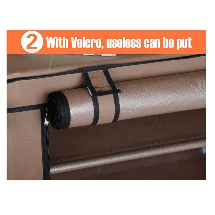 Lemari atau rak mesti berbahan kayu maupun plastik keras. Anda bisa menggunakan materiah kain fabric yang kokoh. Rak susun model rakitan ini jadi pilihan tepat. Selain mudah dirakit, juga dibongkar bila suatu saat Anda pindahan. Lebih hemat ongkos kirim dan efisien pula saat membelinya. Meski rakitan, rak susun ini kokoh dan awet menampung semua barang fashion Anda itu.