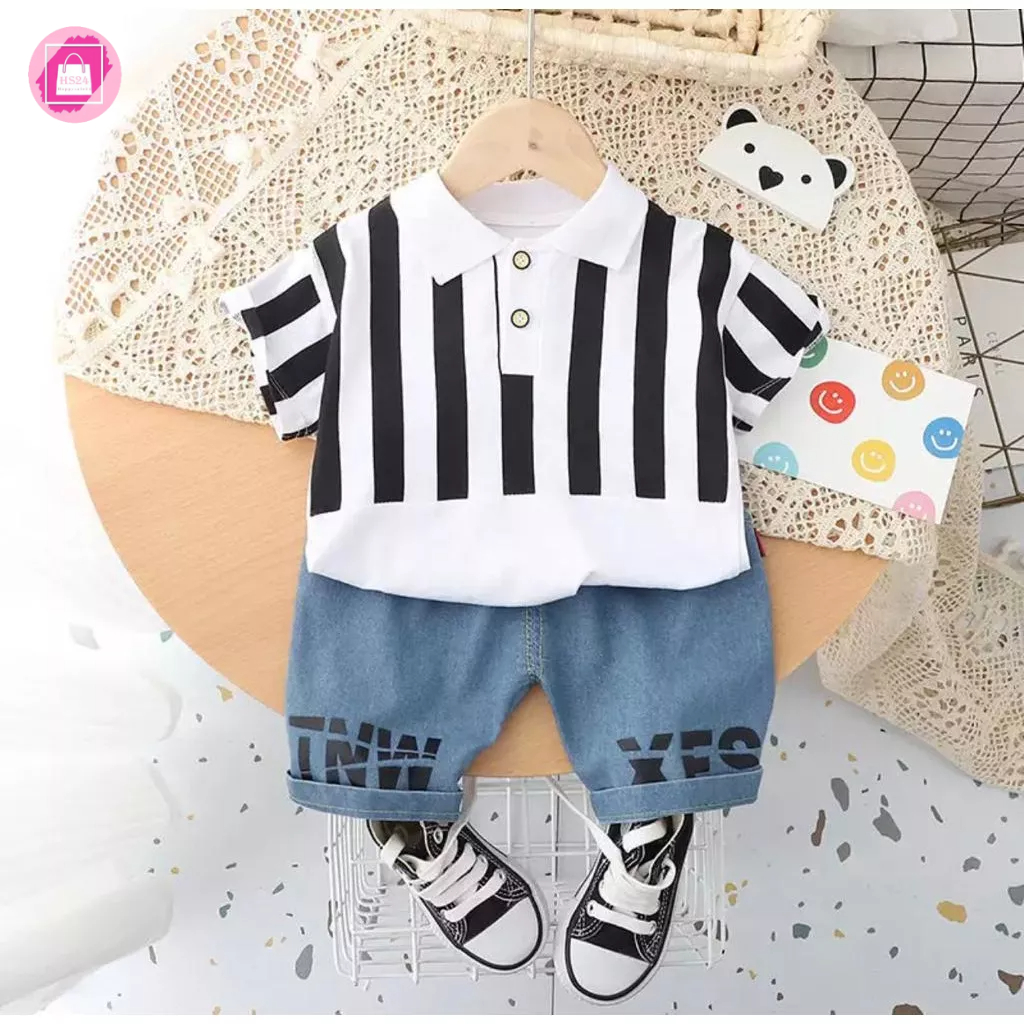 Setelan kaos polo anak celana jeans denim usia 1-5 tahun polo 8 top fashion anak laki-laki pakaian anak baju anak terbaru