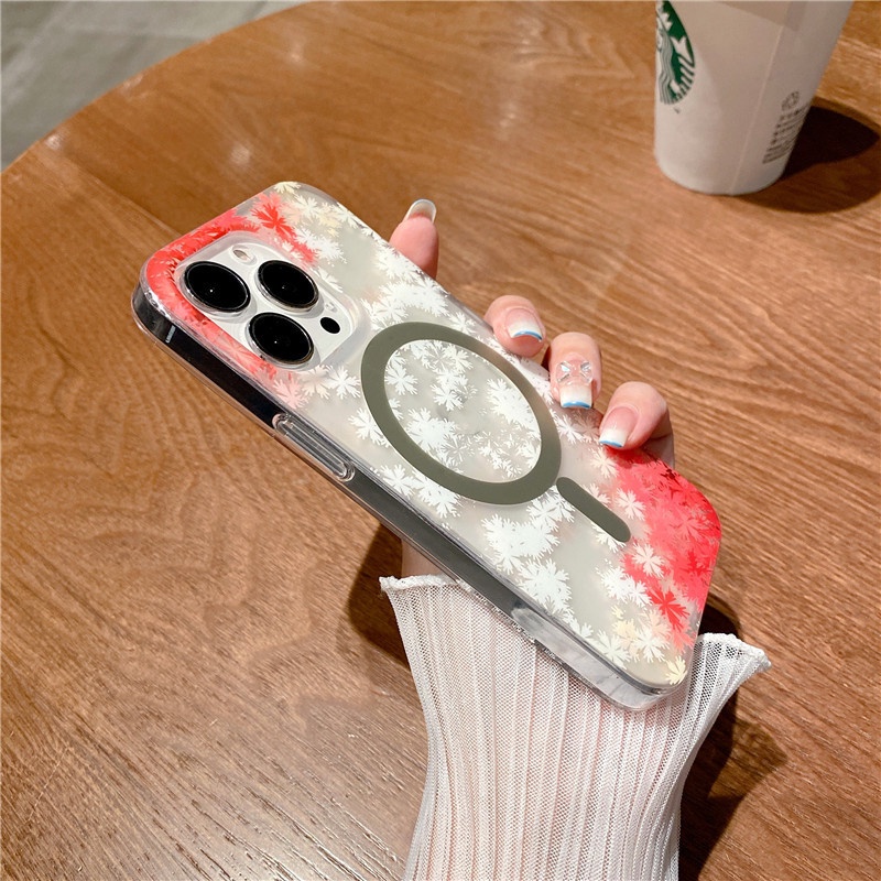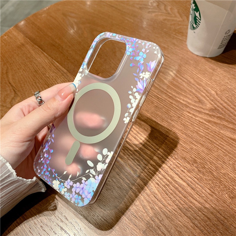 Detail Hard case Magnetik Motif Bunga Untuk iphone 14 pro max 14 plus 12 11 13 pro max