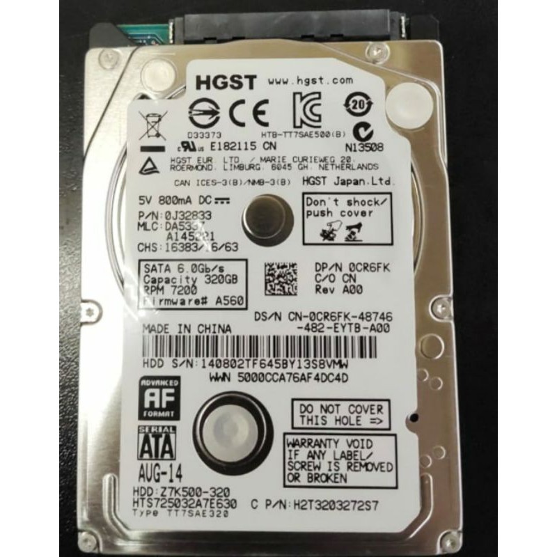 Detail Harddisk 2,5 inch Hitachi 320GB internal Laptop