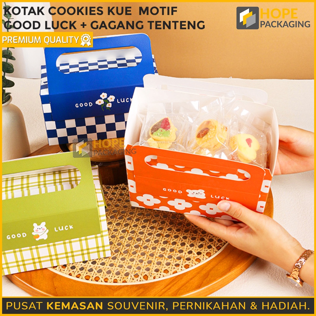 (Harga/ 1pcs ) Kotak Kue motif Good Luck+ Gagang Tenteng uk16.5x 18x 10 cm