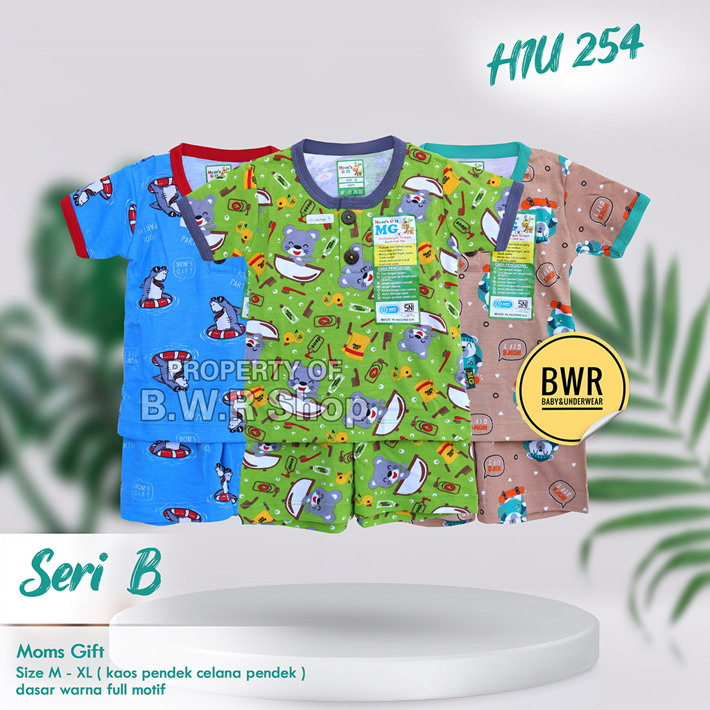 Detail BWR [ 3 Setel ] Setelan PENDEK Moms Gift Terbaru Setelan Piyama Baju Main Anak Pendek ( 1-4 Tahun )