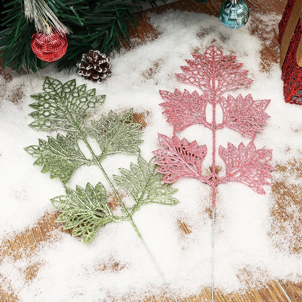 Detail [Harga Grosir]1 Ikat Daun Palsu Model Hollow Warna Emas Untuk Dekorasi Pesta Natal