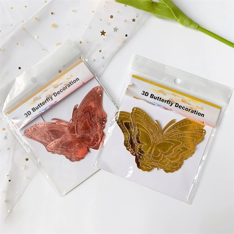 Detail [Harga Grosir] 12pcs Halus Dekorasi Kertas Kupu-Kupu 3-Layer Berongga Kupu-Kupu Stiker 3D Gradien Kupu-Kupu Wallpaper Glittering Art DIY Decals Untuk Jendela Kamar Kulkas Pesta