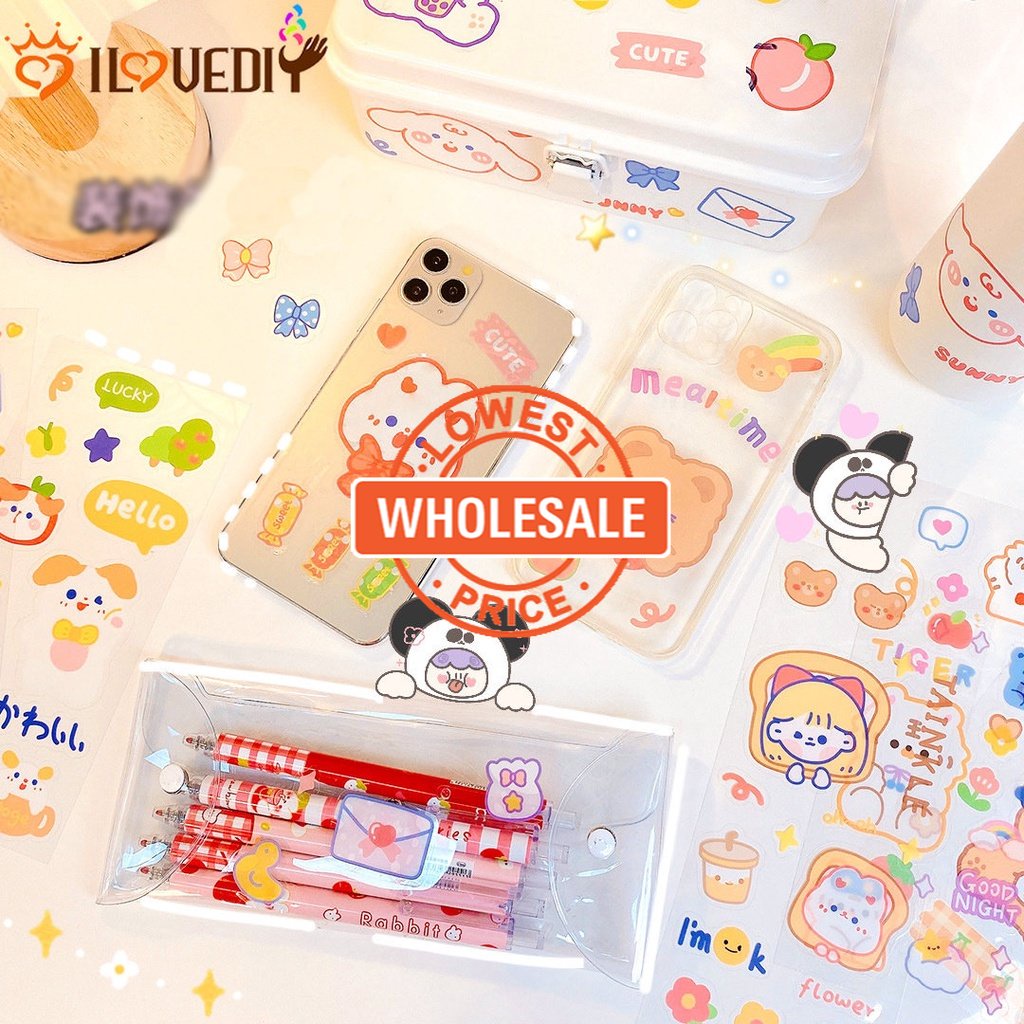 Buku & Alat Tulis > Buku Tulis & Kertas > Label & Stiker > [Harga Grosir] 1pc Alat Tulis Siswa Cangkir Air Pensil Case Stiker Lucu Tanpa Jejak Tahan Air Stiker Hias Kartun Stiker Buku Besar PVC Transparan