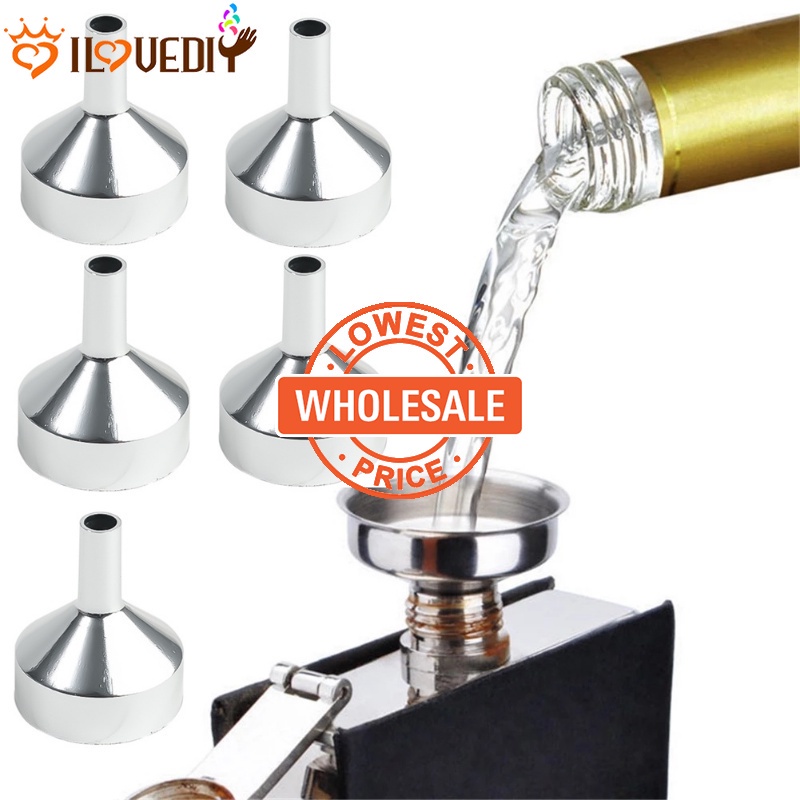 ★★★Deskripsi Produk★★★: Bahan: Aluminium Warna: Perak Ukuran: kira-kira 18x21mm/0.7x0.83'' Kecil dan ringan, mudah dibawa. Cocok untuk corong ujung halus yang sempit untuk bagian atas botol yang sangat kecil. Dapat digunakan untuk mentransfer parfum dari botol ke botol, atomizer, botol kecil, dll. Jumlah: 1 Paket Termasuk: 5 x Corong Mini