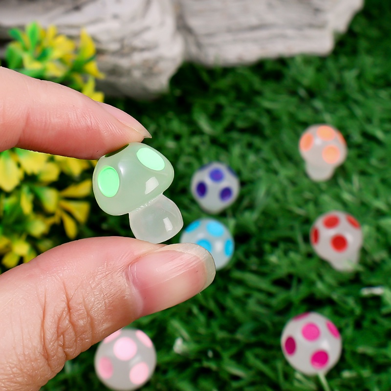[Harga Grosir] Ornamen Resin Jamur Mungil Bercahaya Dalam Gelap Miniatur Taman Pot Kerajinan Patung Lanskap Mikro Patung Mini Mobil Rumah DIY Dekorasi Aksesoris