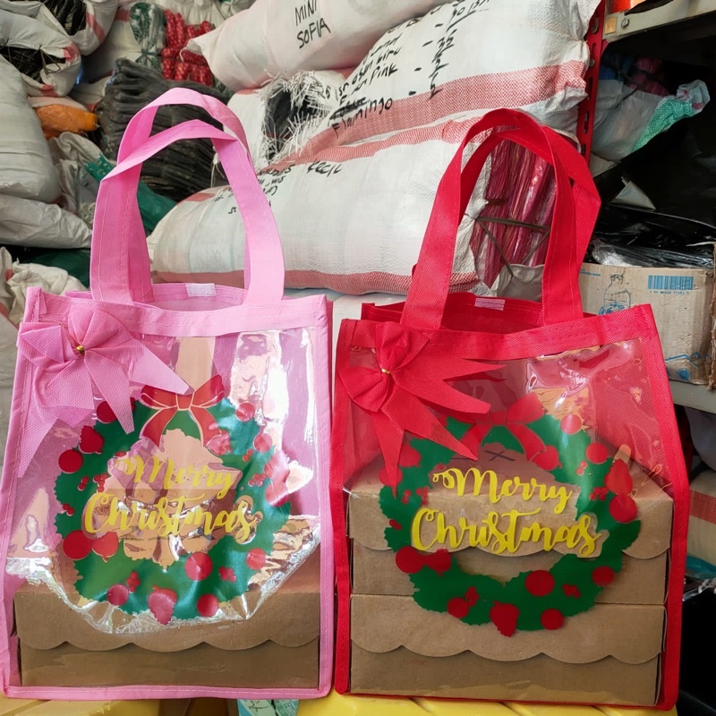 HARGA LUSIN 12 BIJI- TAS HAJATAN MIKA TEBAL PREMIUM 0.25 MM CAKE SIZE 22x22 - EDISI NATAL