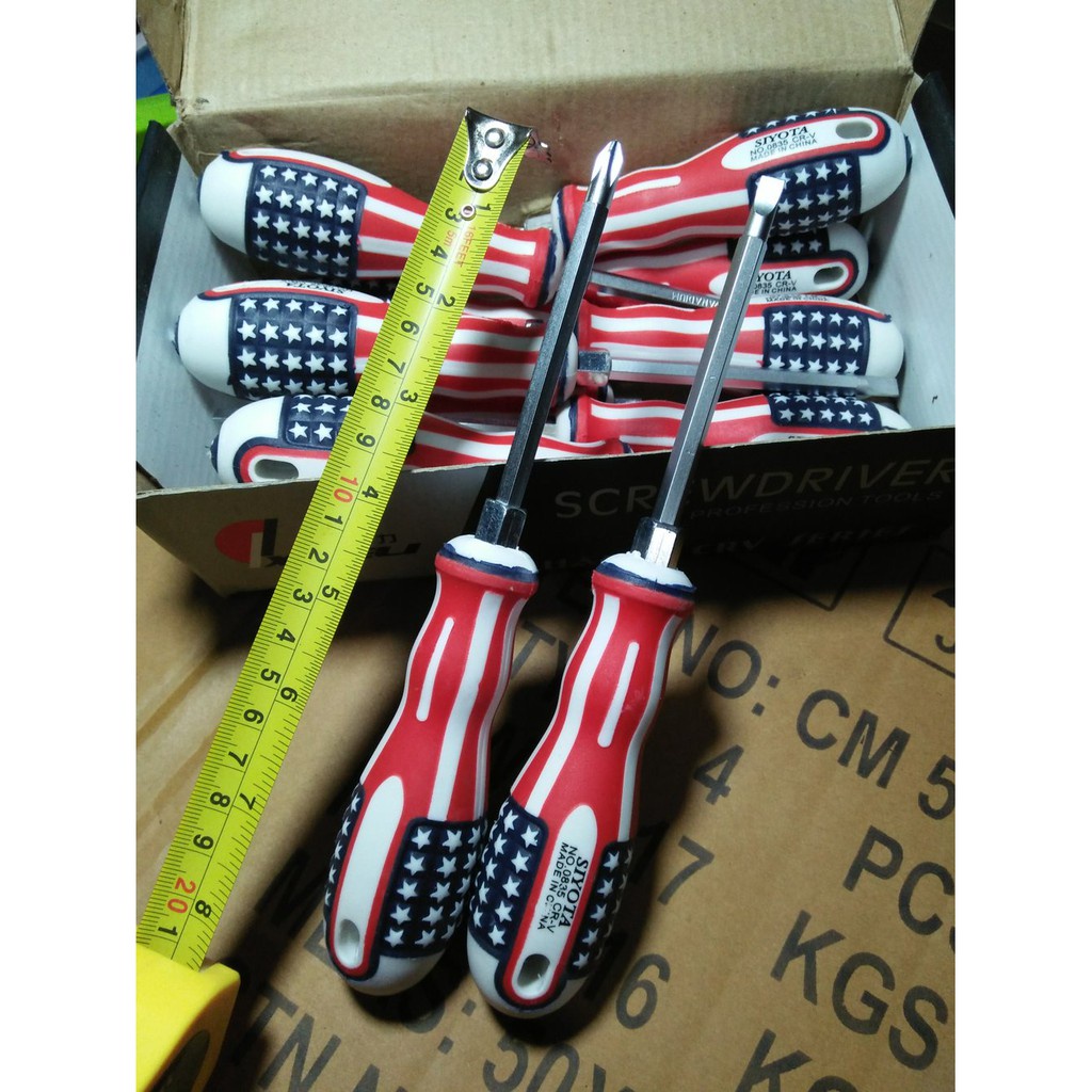 Buku & Alat Tulis > Perlengkapan Sekolah & Kantor > Penggaris, Busur Derajat, & Stensil > HARGA PROMO [ 10 PCS ] Obeng Magnet Amerika Bolak Balik Gagang Karet - 8 Inch - High Quality