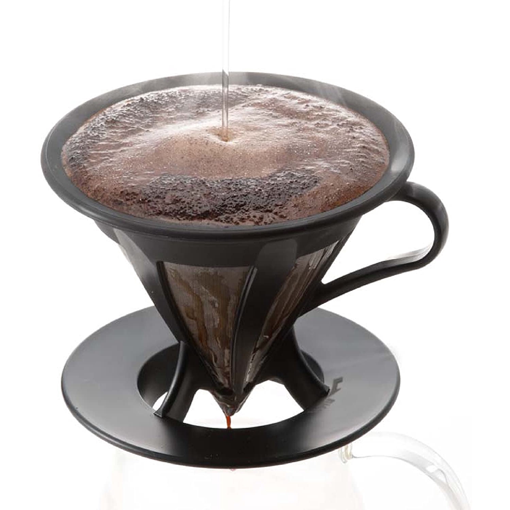 Bagi Anda penikmat kopi, tentu lebih menyenangkan dapat membuat kopi spesial sendiri. Salah satu dripper yang umum digunakan adalah Hario Cafeor Dripper Black 02. Dengan bentuk kerucut menyerupai huruf V dan mirip cangkir, sehingga Anda dapat memperhatikan secara saksama saat penyeduhan. Penggunaannya yang mudah saat penyaringan, maka tidak diperlukan kertas filter lagi. Produk type CFOD dari Hario ini sudah menggunakan metal filter untuk sistem penyaringannya.
