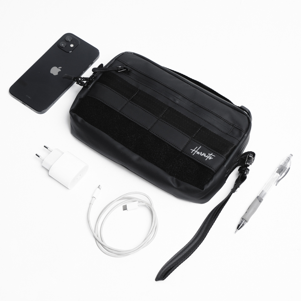 Detail Harmits Project ALTER Clutch Pria Warna Hitam Multifungsi (Hand bag + Sling bag + Hanging bag) Bahan Bimo Nilon Waterproof