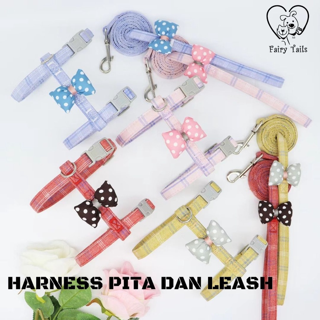 Harness Pita dan Tali Tuntun Untuk Anabul Kucing dan Anjing Travel Outdoor | Pet Cat Dog Leash with Ribbon Harness Y